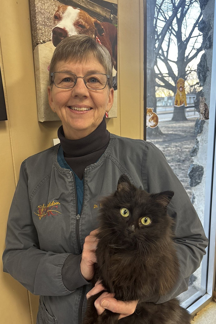Dr. Sandy Schmith graduated in 1987 from Iowa State University College of Veterinary Medicine and moved to the area with her husband Rick to join the Sheldon Veterinary Clinic. In June of 2024 , Rick, Sandy, and their 15 yr old cat “Noogie” moved to Sioux Falls, SD. They love the outdoors, hiking, biking and traveling. Dr. Schmith continues to work part time at the clinic.